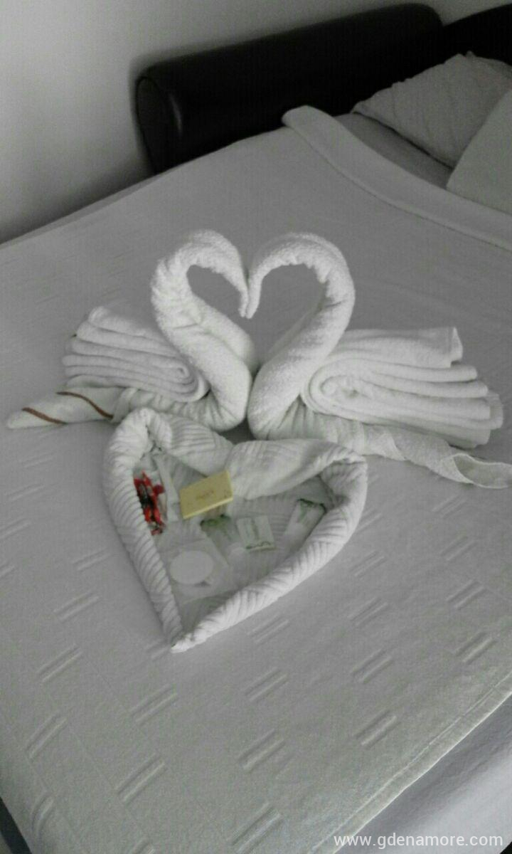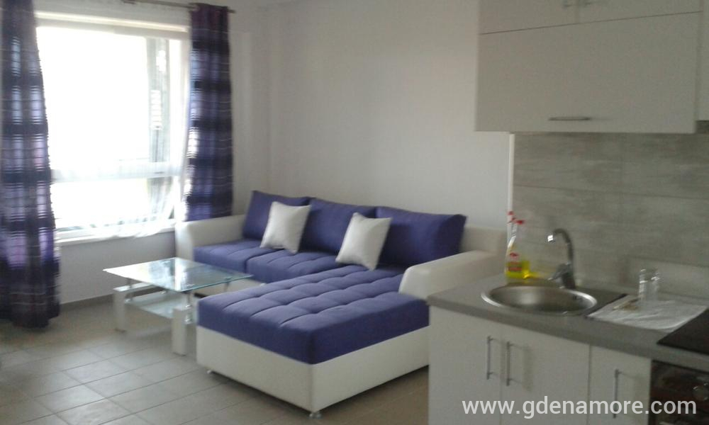 Apartman se nalazi u novom naselju Energoprojekta, sa prelepim pogledom na more uz jutarnju kafu ,kuhinja sa velikim dnevnim boravkom i trosjedom na razvlacenje,kupatilo, spavaca soba,lcd,WIFI,tv,namesten i opremljen,u blizini se nalazi mini pijaca, pekara,mesara prodavnice, apoteka, kafic, drugi red od mora.
